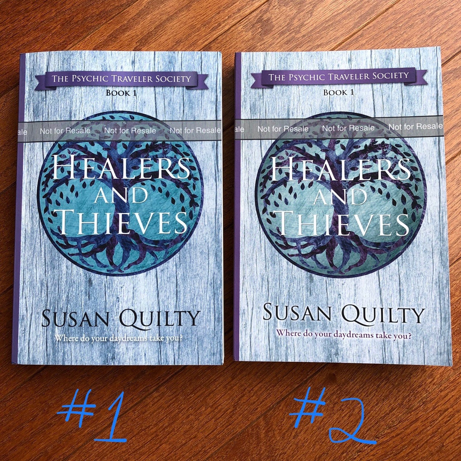 With my current book (Healers and Thieves), the digital cover was lovely, but the print cover left a lot to be desired. The colors in the art were too saturated and simply didn’t print the way I expected. Since I drew the cover art digitally, I was able to make some relatively easy adjustments, and I was happier with the second physical proof.